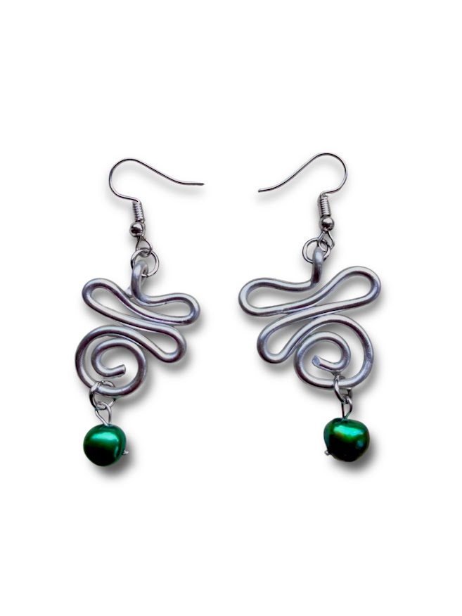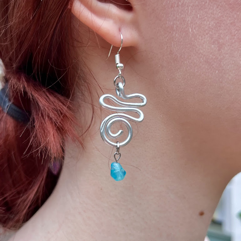 Wire wrapped earrings made with repurposed wire and allergen-free earring hooks.